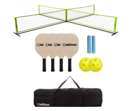 Pickleball is fun but what about 4 square pickleball? While this net converts to a regular pickleball net, you can also switch things up to play the offshoot game of 4 square pickleball.
