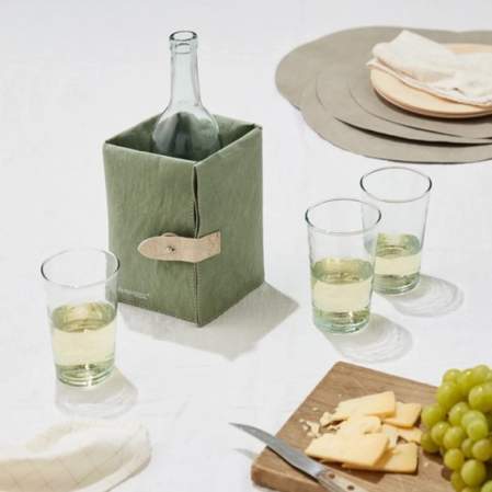 In keeping with my as-little-plastic-as-possible mandate, I have fallen in love with a family-owned line called Uashmama (pronounced wash-mama) from Tuscany. Widely available at home and design stores across Canada (I buy mine at Vancouver’s Kerrisdale Lumber) – this brand specializes in washable paper products fashioned for uses in unlikely ways. Case in point? See below.