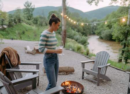 Fall fires are a great way to enjoy the cooler outdoor weather, whether you’re roasting up some marshmallows or sipping on a drink and staring into the flames. This fire table gives you instant warmth without taking up a ton of space, and you can quickly move it around the yard depending on where you’re hanging out.