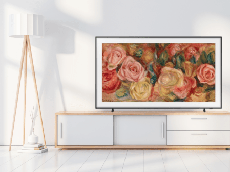 Transform your space with the Samsung Frame 65″—a stunning QLED TV that doubles as a work of art when not in use. It’s perfect for watching rom-coms with your valentine.