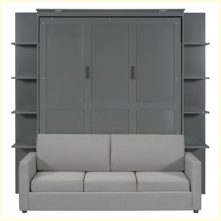 If you’re looking for a multifunctional use of limited square footage that offers flexibility with how you use this space, a murphy bed is your best bet. What’s even better than that? A murphy bed that offers seating by way of a sofa, when not unfolded. This space-saving, storage-giving Wayfair option folds away into a cabinet to open up floor space in that multi-use spare room, home office or small apartment or it extends into a bed that is fit for nightly use. It supports and hides a mattress of up to 10-inches, while the sofa cushions smartly tuck away into the sofa when they aren’t being used. There are built-in potlights and shelves so you both read your books and have a place to stow them when those eyelids get heavy.