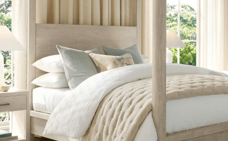 If you love the idea of a canopy bed, but still want something chic and modern, we have you (ahem) covered. Crafted of solid wood and in Pottery Barn’s “exclusive Sandwash finish,” this bed frame is all curves and summer beach house vibes. The design really highlights the beautiful wood grain while the four-poster frame makes an eye-catching statement. Built out of kiln-dried mango and acacia and enhanced with Pottery Barn’s meticulous Sandwash finish, which gives it the soft, weathered patina, the frame is still ethically-made using sustainably-sourced orchard trees that no longer bear fruit and that are otherwise cleared to make space for fruit-producing trees. The kiln-drying process ensures the wood won’t split, warp, crack or mildew with time. It comes with a slat roll foundation and does not require a box spring.