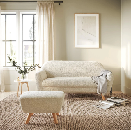 Grab this gorgeous set while it’s on sale. Featuring the cloud-like Gabriola Loveseat, matching ottoman, and Mara side table. Soft bouclé, smooth edges, big comfort: it’s a bundle made to linger in.
