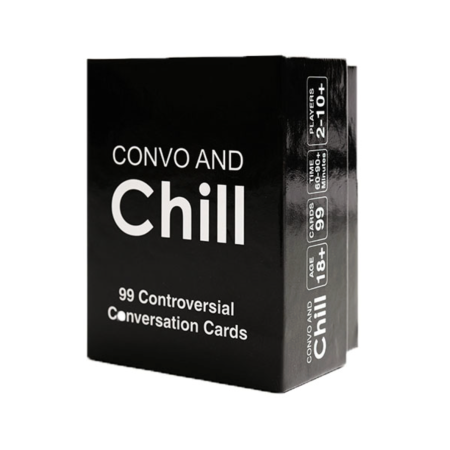 Convo and Chill – Original Edition is the ultimate card game for adults, packed with 99 fun, provocative questions guaranteed to spark epic conversations for parties, date nights, or a casual night in with friends.
