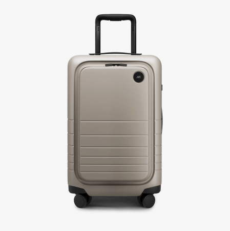 This carry-on from Monos is made for travellers who want quick access and serious durability, with a smart front compartment that keeps a 16″ laptop secure and easy to reach. Not to mention the sleek polycarbonate shell, whisper-quiet wheels, and premium details (yes, please!).