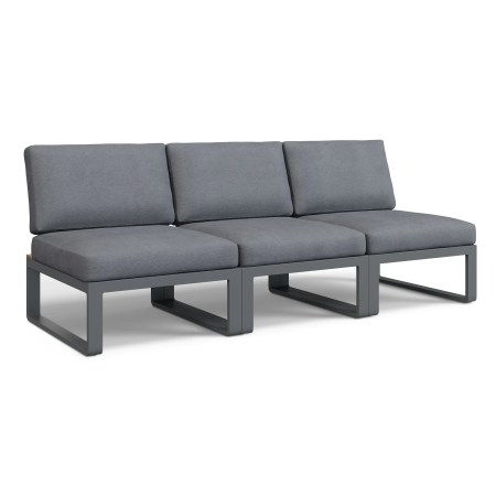 A sleek, weather-resistant outdoor sofa in whale gray with plush cushions and a modular design, perfect for relaxed lounging.