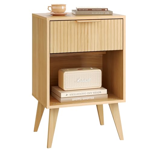 This light-wood nightstand showcases a sculptural fluted design and mid-century modern silhouette that adds texture and visual interest to any space. Use it as a bedside table, an end table in the living room, or a stylish side table to display décor accents.