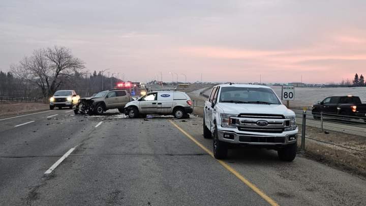 Wrong-way driver, allegedly impaired, triggers 3-vehicle crash in west EdmontonAccording to Parkland County RCMP, an impaired driver was headed east in the westbound lanes of Highway 16a when it side-swiped one vehicle and collided head-on with another.TrafficNov 27